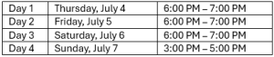 Autograph Schedule